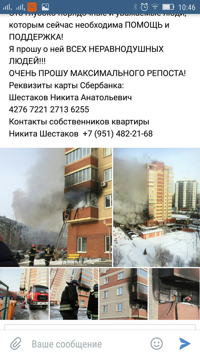 А вчера в ВК появилась запись о сборе средств погорельцам