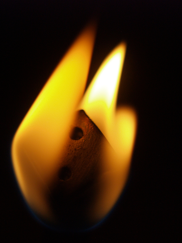 Делать было нечего, под руку подвернулись железный игральный кубик, сделанный много лет назад на уроках труда в школе, гильза от АК и немного бензина "калоша". Бензин наливается в гильзу, немного не доходя до края, сверху ставится кубик уголком вовнутрь. После прогрева гильзы несколько минут горит завораживающим пламенем, причем кубик нагревается практически докрасна. Как-то вот так.