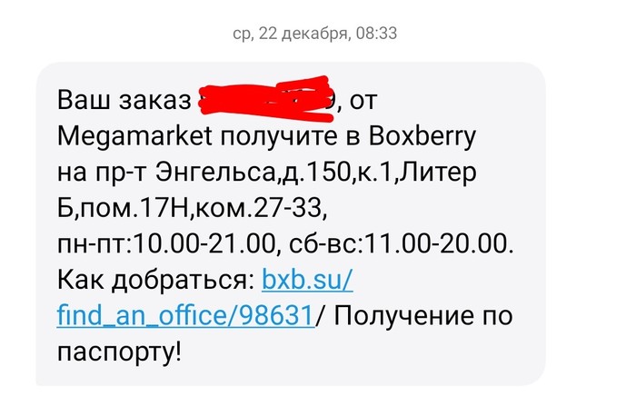 День прошел, настало утро. Мне приходит смс о том, что заказ прибыл в ПВЗ на Просвете. На сайте Боксберри информация подтвердилась, в приложении Маркета статус "доставлено, готово к выдаче". Собрался, поехал, приехал, давайте. А мне говорят, что заказа нет. И не было, и в накладной нет, и вообще вчера и сегодня утром никаких доставок в ПВЗ не было. Потухший зад загорелся опять, звоню в поддержку Боксберри. Они мне говорят, ваш заказ на Тихоокеанской. Я спрашиваю, а какого же тогда статусы и смс говорят о другом, на что мне отвечают, что ну вот так случилось, а заказ в другом ПВЗ. Заявку продублировали, сообщили, что все будет ок, как придет на Просвет, так и сообщим.