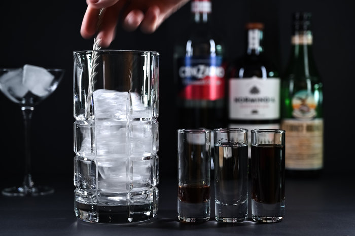 Сливаем в бокал ингредиенты: