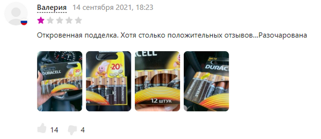 99% батареек марки Duracell подделка на сайте, отзывы пишут за компенсацию 50-100 рублей. Сам Duracell яростно судится с фирмами, которые торгуют контрафактом. И это не серый импорт, а именно подделки.