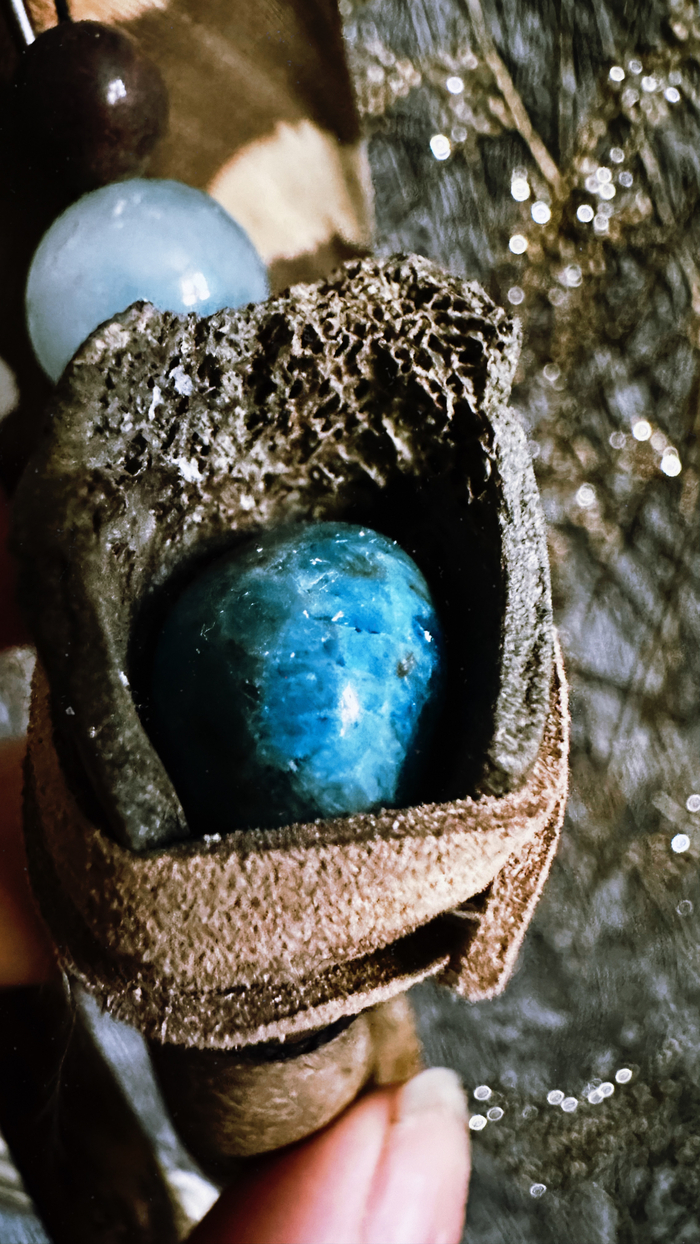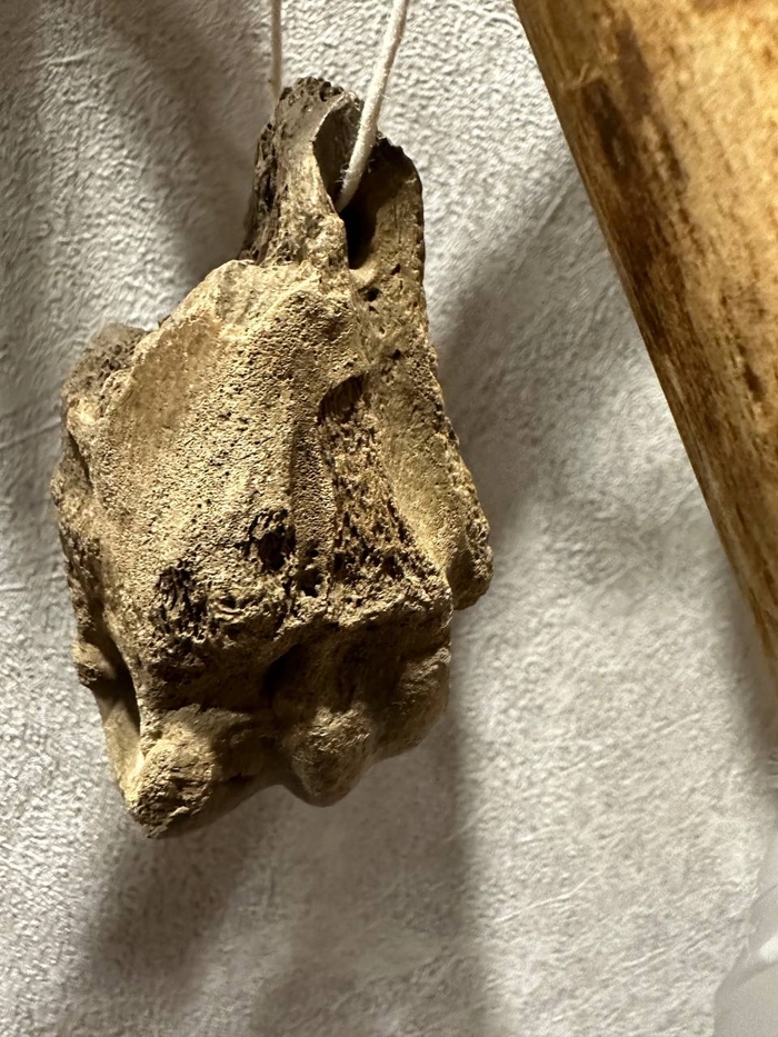 Для более мощной энергетики я добавила кость пещерного медведя Ursus spelaeus, Кайнозойская эра, Четвертичный период, Плейстоценовая эпоха (более 20 тыс. лет) и фрагменты костей лошадей Equus (около 12 тыс. лет). Череп наших дней.