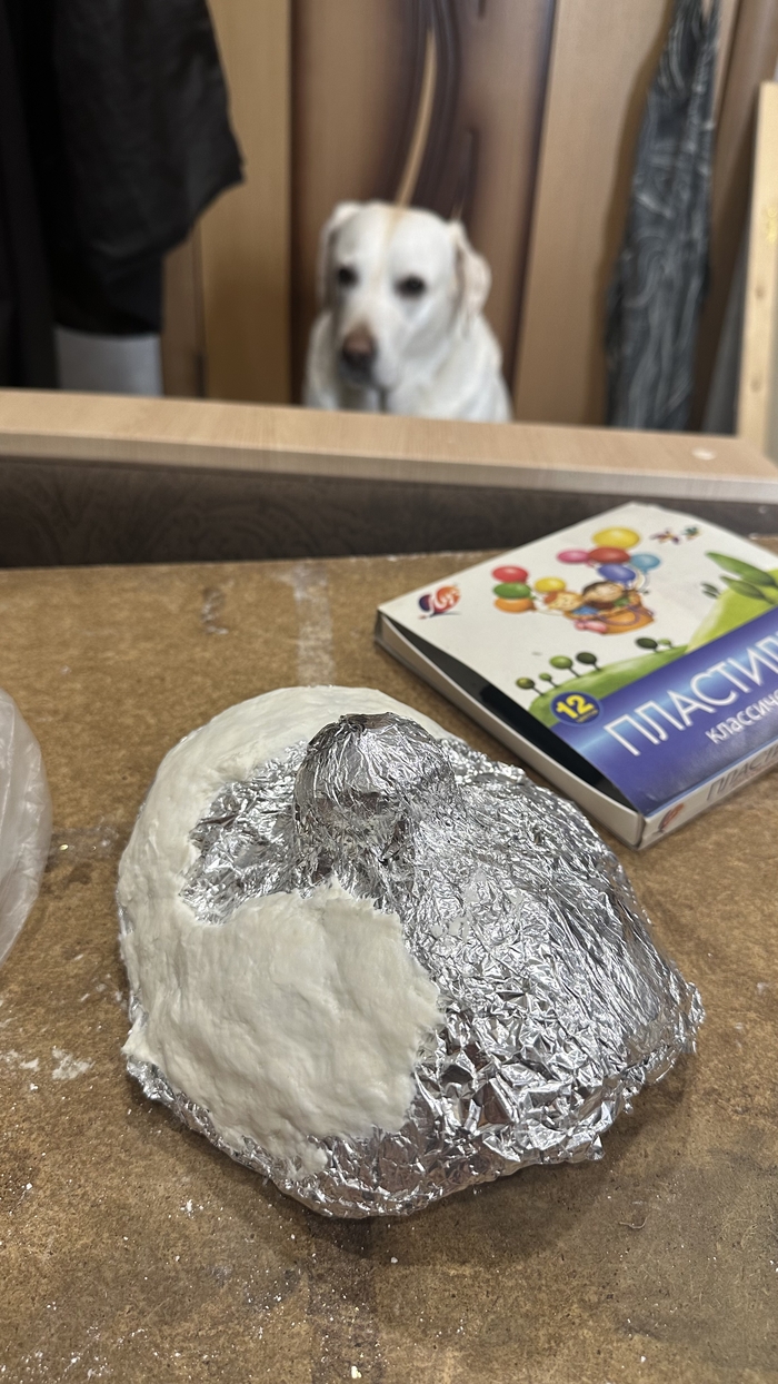 Ок, мы сделали слепок или используем уже готовый. Далее нам надо на слепке вылепить то, что мы хотим. Для того я взяла детский пластилин.