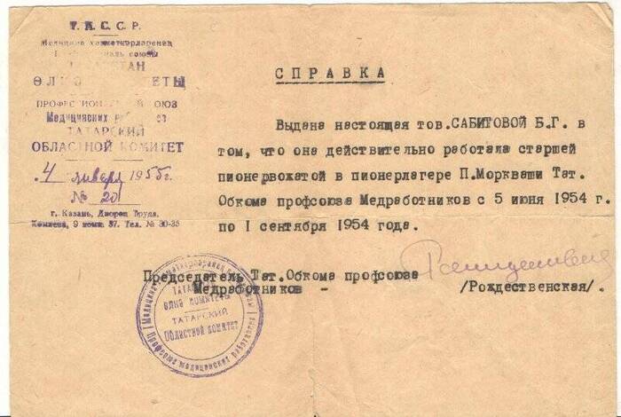 Справка: «Совет народного хозяйства Татарского экономического района (Татсовнархоз, ТСНХ) .Образован в соответствии с законом "О дальнейшем совершенствовании организации управления промышленностью и строительством", принятым 10 мая 1957 г. 7-ой сессией Верховного Совета СССР, ликвидирован как самостоятельный орган в соответствии с постановлением СМ РСФСР от 26 декабря 1962 г. об укрупнении совнархозов, вошёл в состав Средне-Волжского СНХ с центром в г. Куйбышеве».