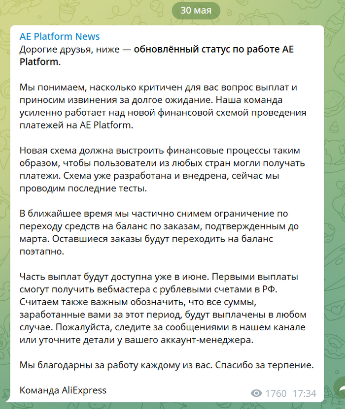 Суть поста: Данная платформа прекратила выплаты с конца февраля и усердно кормит завтраками Причем другие партнерки давно возобновили свои выплаты, (называть я их не буду)