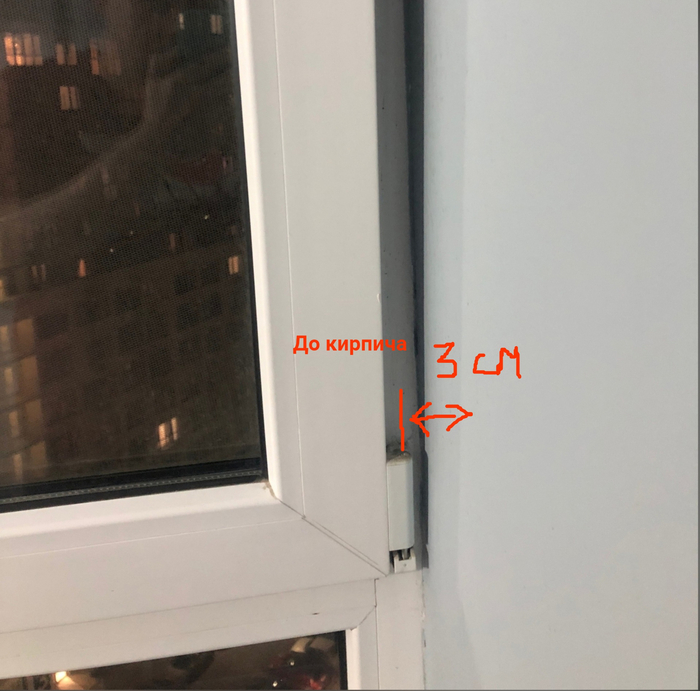 Правая стена, от кирпича до середины механизма открытия окна всего 3см(