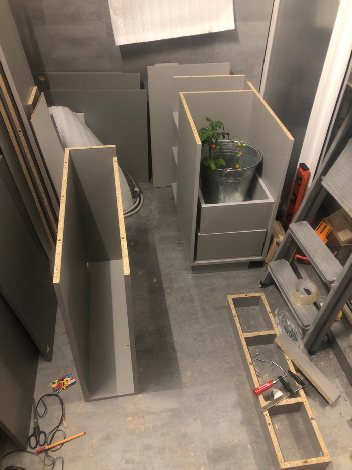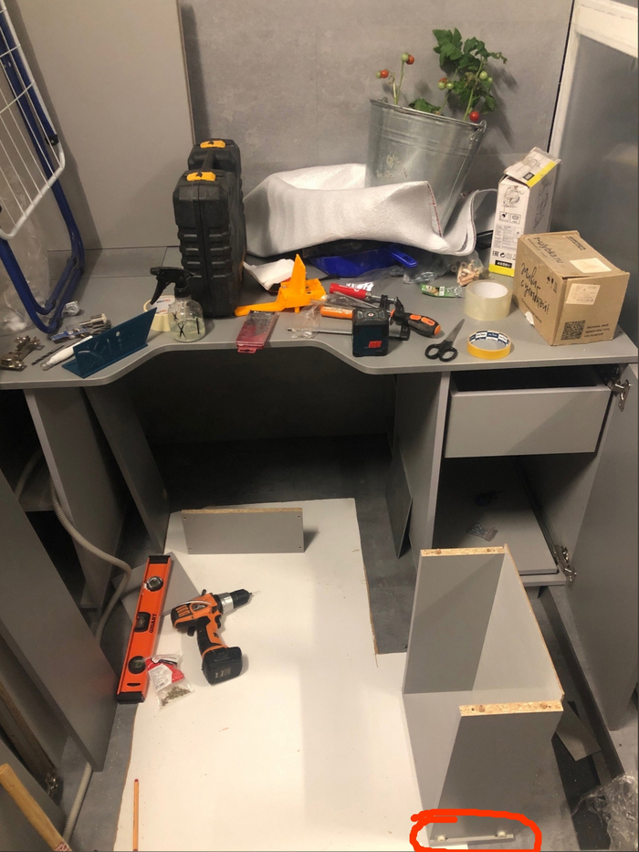 •Делаем замеры помещения/ниши где будет стоять ваша мебель, это один из самых ответственных моментов. Если вы планируете собирать встраиваемую мебель, то ошибка в замерах помещения даже на 5мм, приведет к печальным последствиям. С зазорами повнимательнее) У меня встраиваемый столошкаф плюс открывающиеся створки окон, жб балка которая выпирает из под потолка и чуть неровные стены, поэтому промерял все раз семь. Промерять важно из разных точек плоскости стены, если у вас конечено не идеальная коробка со всеми углами в 90 градусов