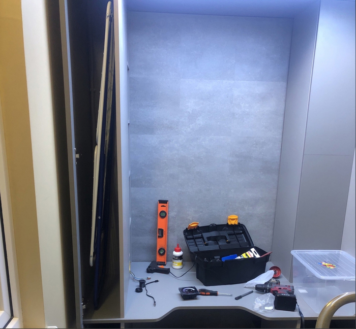 •В нише слева располагается стремянка, сушилка и блок питания для светодиодной ленты