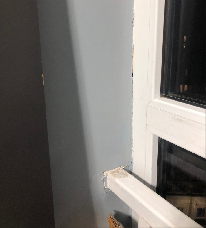 Левая стена, от кирпичной кладки до оконных рам есть примерно 5 см.