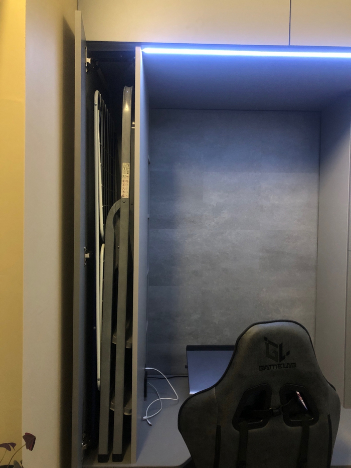 •Получилось довольно таки минималистично и функционально. На дверях с антресолями получился слишком большой зазор, сильно перестраховался.