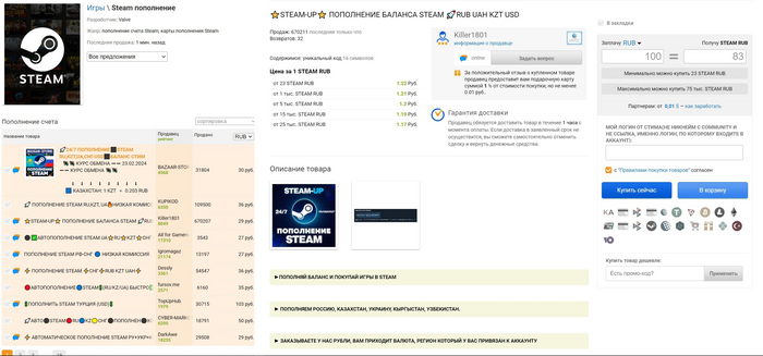 -У сайта адекватная техподдержка, отвечают быстро и по существу. Из недостатков - это то что способ пополнения зависит от продавца и вы не можете проверить насколько легально продавец пополняет ваш стим.