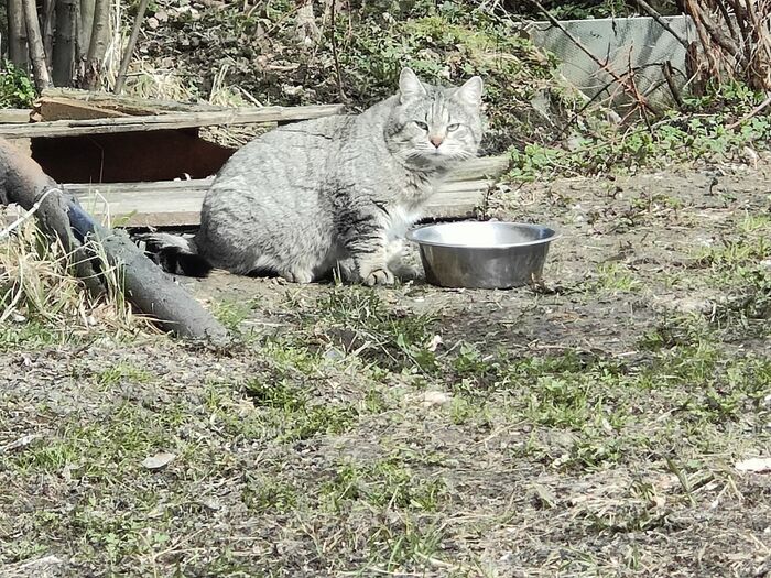 Всем привет. Держу вас в курсе, что я мистера Волосатые Неуловимые Штаны пока не смогла поймать, но постоянно его навешаю. Сейчас очень тепло, еда в доступе, вода тоже. Оставляю ему ещё натуралки.