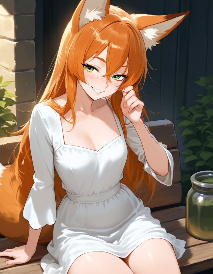 Идём дальше Алиса, Взрослая обворожительная кицунэ (ей 26, так что можно) пока она просто посетительница Лавки, но думаю уже все догадались куда всё идёт. Кокетка, но при этом заботливая, сразу поняла что нужно подружится с Алеськой.