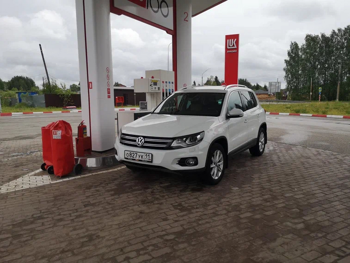 Но. Пока мы ехали от Твери до Новгорода с нами параллельно ехал белый Дастер, да что-то так подозрительно лихо он ехал, что я ради интереса пробил его номер по телеграм-боту, просто ради того, чтоб понять, какой у него мотор. 1.6 или 2.0 оказался 2.0. И на заправке мы пересеклись с владелицей этого Дастера (они подъехали за нами на соседнюю колонку через минуту-две) и она спрашивала у меня как пользоваться колонкой, так как там нет оператора. Я объяснил, как выбрать колонку, как оплатить и тд.