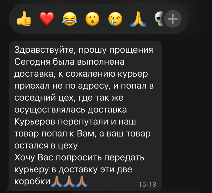 Привезли не тот товар. Я связываюсь с отправителем.