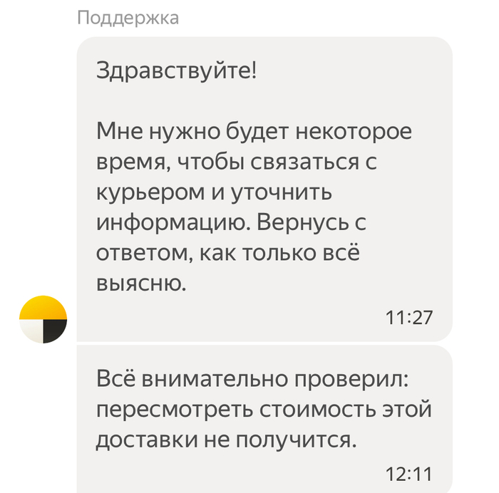 Получается поддержка признает, что курьер по ошибке забрал чужой заказ и даже готовы своими силами привезти его обратно отправителю? Получается и мне деньги за доставку вернут?
