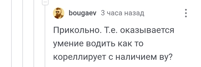 Занятно и то, что уважаемый пикабушник не видит связи с умением водить и наличием ВУ.