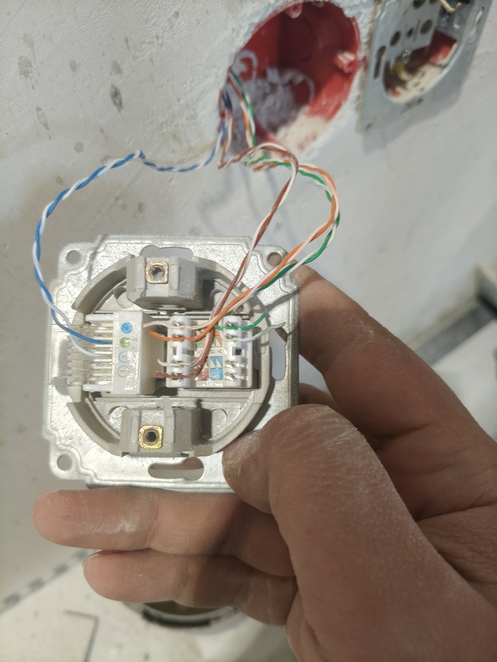 Сильно не пинайте, раньше в квартире не жил. Добрался с ремонтом в прихожую, квартира новостройка, около входной двери стоит розетка под 2 rj45, я думал раньше что это интернет так закинули, но теперь когда пришло время заняться плотно - ничего не пойму. В розетку заходит витуха, из неё одна пара идёт на один разъем розетки с четырьмя контактами, а три пары идут на другой полноценный