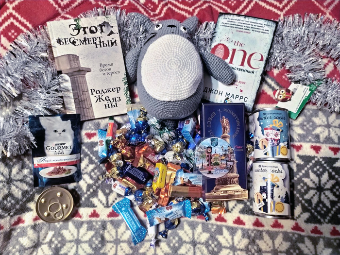 Мы благодарим нашу снегурочку Свету за такой чудесный подарок! Учтены наши пожелания, и даже не забыт подарок для нашей котейки! Игрушка Тоторо это вообще что-то непередаваемо крутое, просто бомба! Желаем тебе в Новом году всего самого лучшего: чтоб мечты сбывались, удача сопутствовала во всех начинаниях и тебя сопровождали только самые позитивные эмоции!