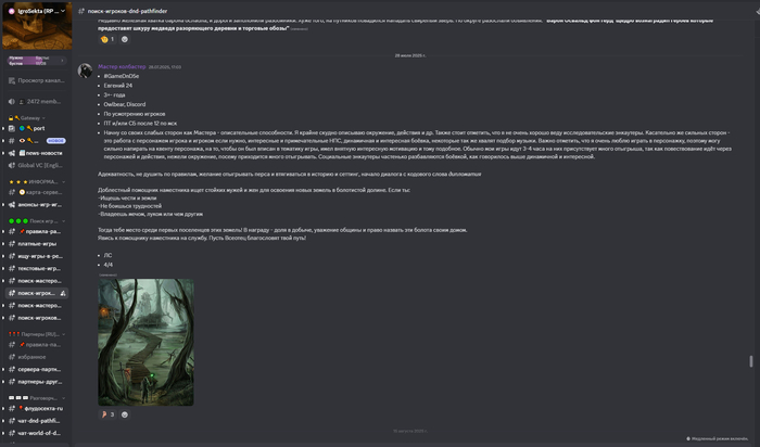 Если посмотреть на децентрализованные сообщества (например, в Discord), видно, что люди часто дублируют заявки в разные группы. Иначе шансов найти игроков или мастера меньше. Мы это хорошо чувствуем на себе — уже больше полугода не можем найти крутого второго ГМа.