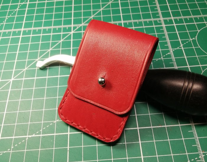 Кожа Краст 1.6 мм, Россия, пола. Кромки срезаны, урезы и бахтармы обработаны Токонолле. Выполнена биговка, 2 мм. Нить плетёная плоская 0,8 мм, седельный шов. Пробойники с японским зубом, шаг 5 мм. Поверхность обработана BRCraft Finish, глянцевый. Клей А240. Выкройка из открытого доступа. Расход кожи - порядка 2-3 дм2.