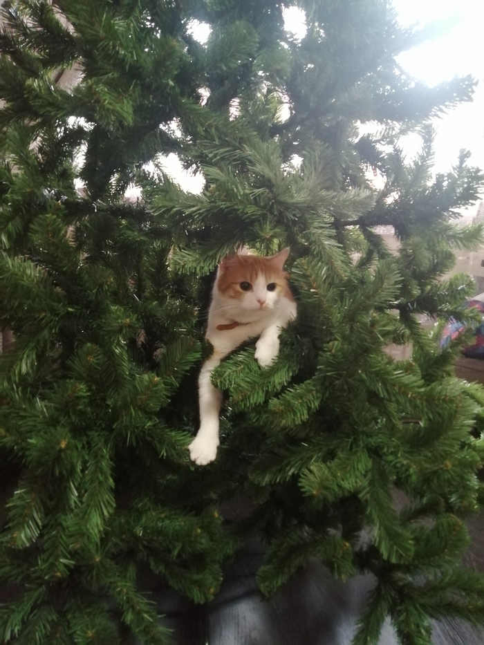 "Младшая" кошка - Рыжик. Каждый год лазает по всей ёлке.