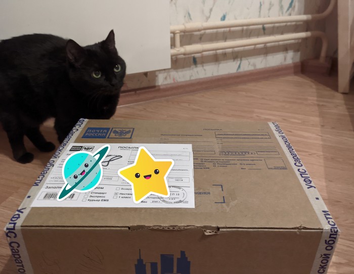 Забежала я на Почту России, и выносят мне большую коробку, о размерах которой я и не подозревала. Еле дотащив это чудо до дома, я приступила к погружению в новогоднюю атмосферу (кошка все это время недоуменно наблюдала за хозяйкой).