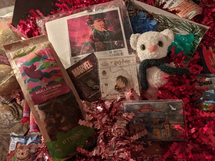 Прочитав поздравление от Деда Мороза и сразу схомячив найденную в посылке шоколадку, я рассмотрела содержимое посылки и пришла в восторг от такого старательного отношения к данному подарку, было очень приятно и радостно вскрывать упаковки и угадывать, что же там может быть.