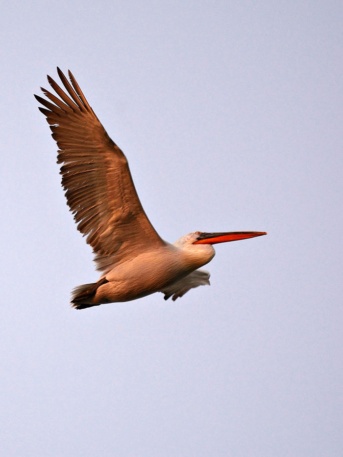 Кудрявый пеликан. Одна из самых больших летающих птиц! Ну да, пеликаном трудно удивить настоящего бёрдера. Это, как бы сказать, попса. Но я люблю наблюдать, как над головой пролетает эта пудовая туша на трехметровых крыльях.