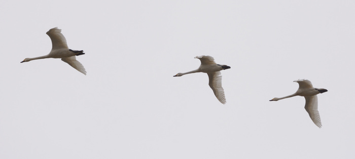 Итак, хронотоп: Хакасия, последние числа мая. Это одно из самых прекрасных сочетаний времени и места для орнитолога. Ещё не завершился пролёт северных стай и, подняв голову в небо, можно увидеть, например, краснокнижных малых лебедей. Этот лебедь иногда рассматривается как самостоятельный вид, а иногда - как подвид американского лебедя. Он очень похож на кликуна, но размеры у него ближе к гусиным. Последние годы их маршруты во время весенней миграции как-то поменялись и в Западной Сибири малый лебедь стал встречаться чаще. Не знаю, виной ли тому глобальное потепление, аномалии магнитного поля или бог знает что ещё, но факт есть факт.