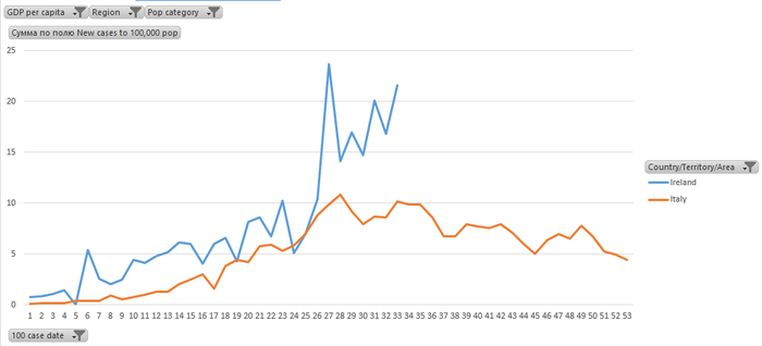 На фоне больших цифр как-то теряются малые страны, которые «незаслуженно» обходят стороной. Вот, например, статистика по заболеваемости в Ирландии, где ситуация выглядит в разы драматичнее, чем в той же Италии. Страна с населением чуть меньше 5 млн человек имеет прирост количества больных более 1000 человек в сутки: