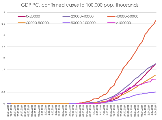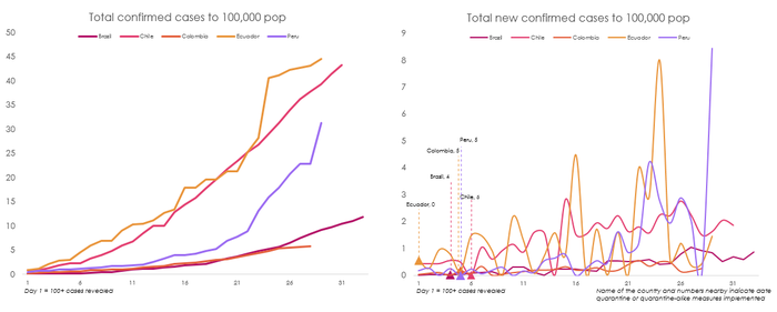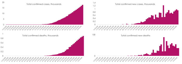 Может сложиться впечатление, что драматичнее всего ситуация развивается в Эквадоре и Перу – странах, которые объявили карантин практически на самом старте с момента выявления 100 инфицированного случая. Думаю, что карантинные мероприятия пока не приводят к должному результату по причине низкой дисциплинированности жителей и низкого уровня жизни. Кроме того, сохраняется множество вопросов по корректности статистики при виде резких всплесков в этих странах.