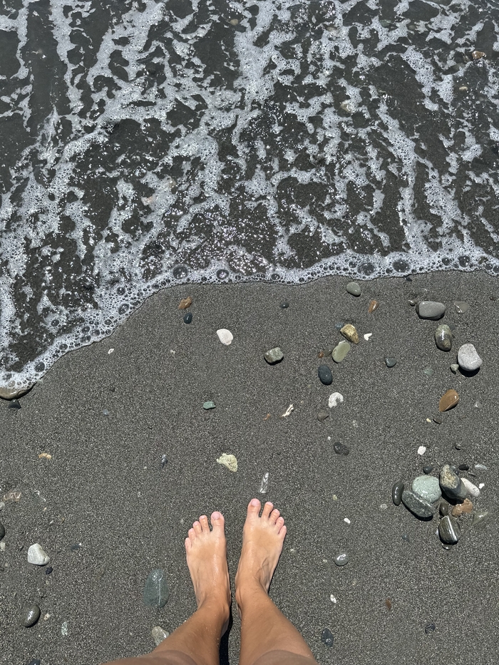 Ходили на пляж Мандарин чаще всего, там по большей части песок и камни крупные, но вода из-за песка мутная у берега. Ближе к реке народу меньше лежит (в том месте река впадает в море, но течение уходит в другую сторону, на пляже можно спокойно отдыхать и купаться, вода не холодная).