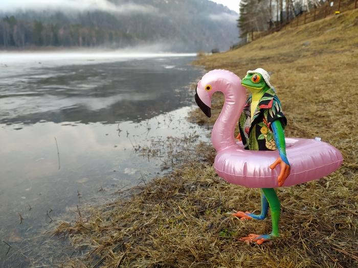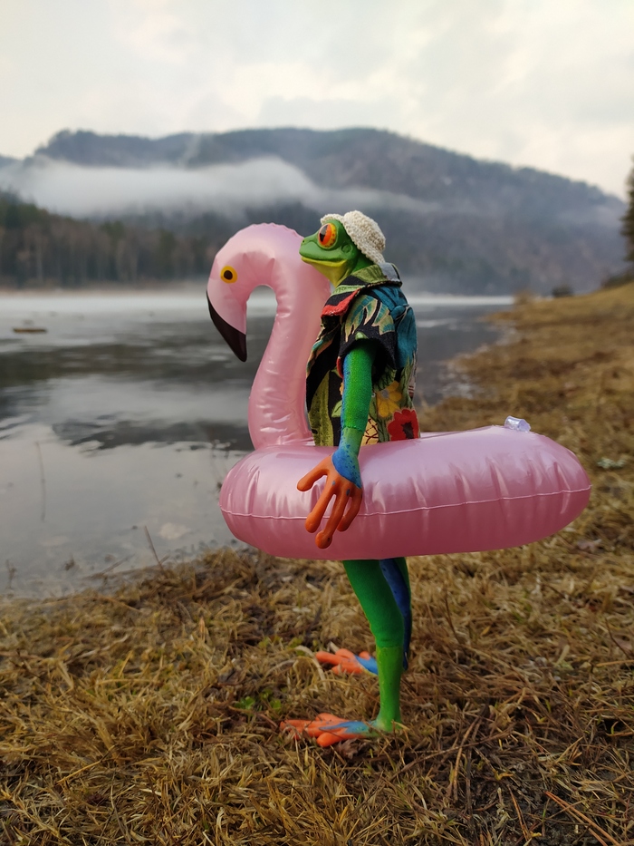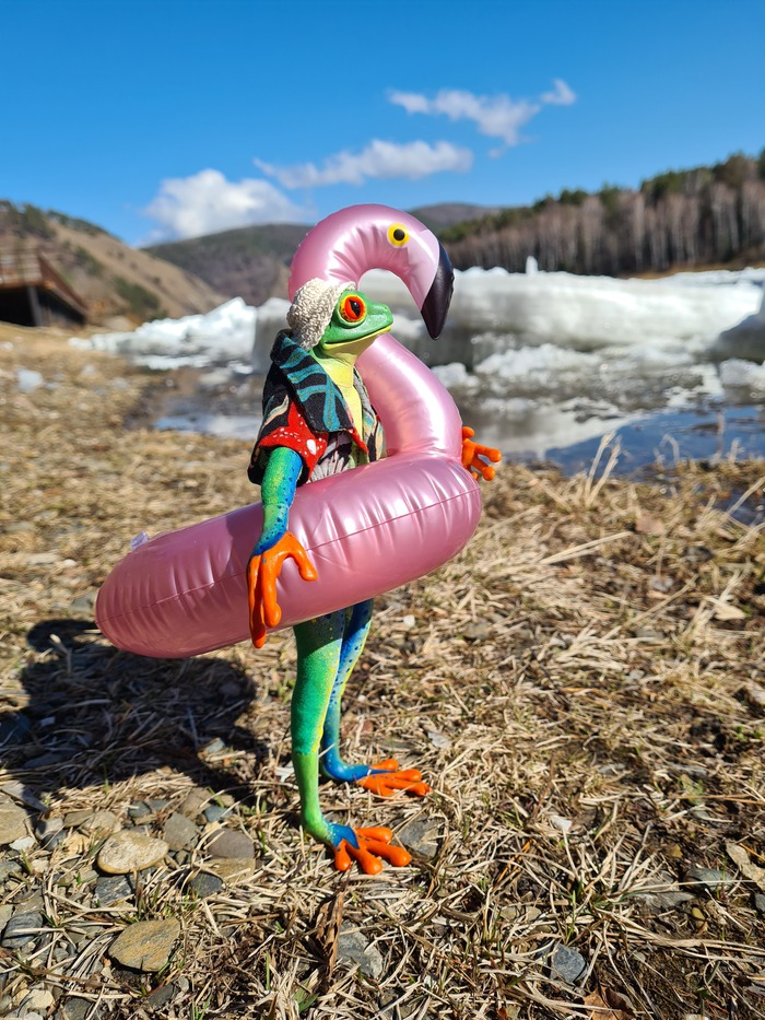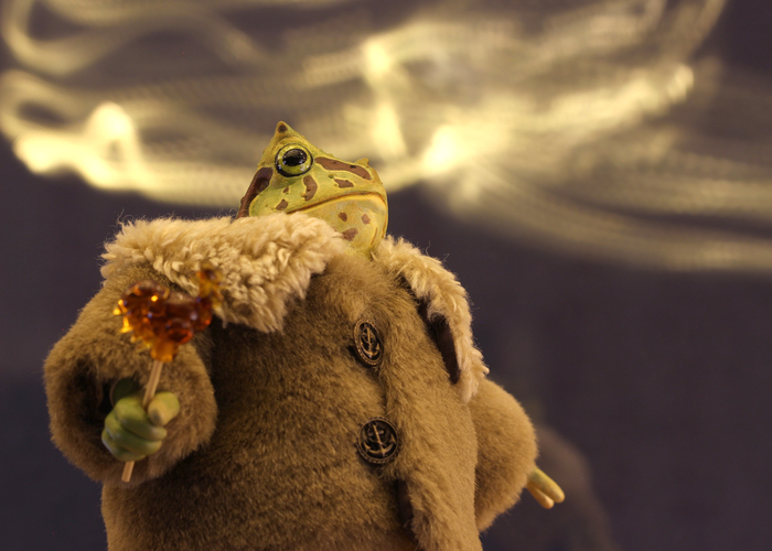 Я уже показывала тут этого лягуха, но поскольку его до сих пор не забрали, решила устроить ему ещё одну фотосессию. А то как-то так вышло, что у самой летней из моих работ фотосессия до сих пор была только на фоне льда.