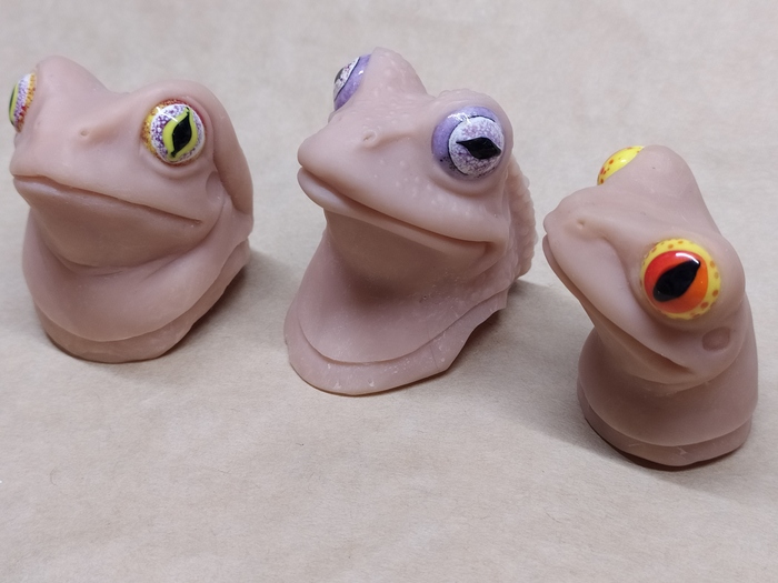 Всё, как обычно, началось с головы, а вернее с покупки глазок, которые подтолкнули сделать сразу партию голов. Тут, помимо древолаза, чакская филломедуза и озёрная лягушка (на зоологическую достоверность не претендую).
