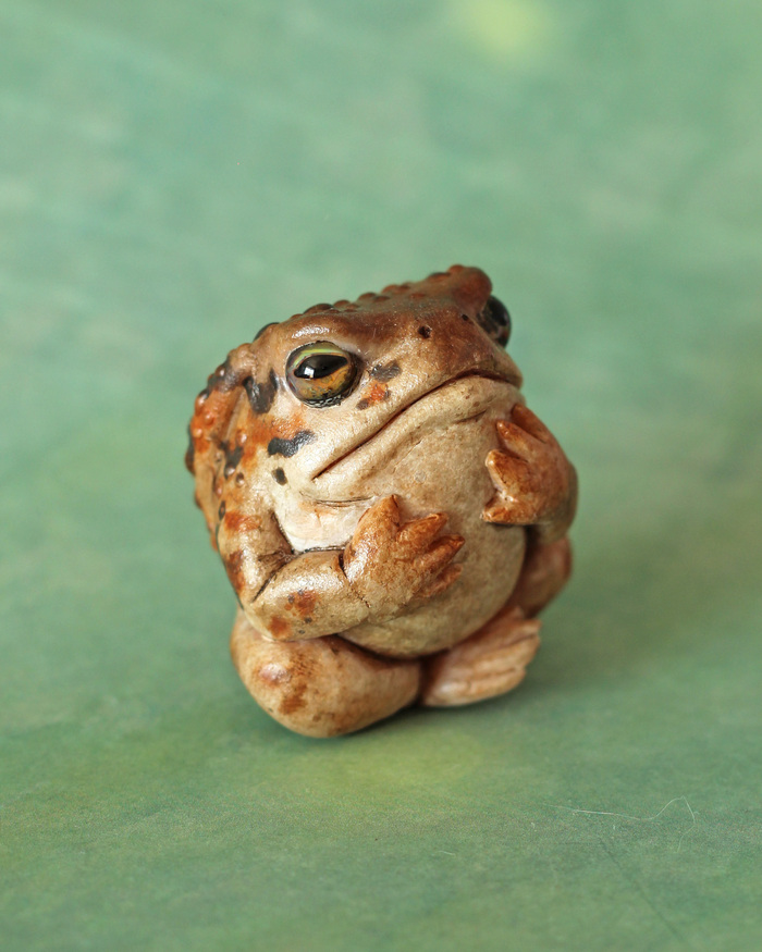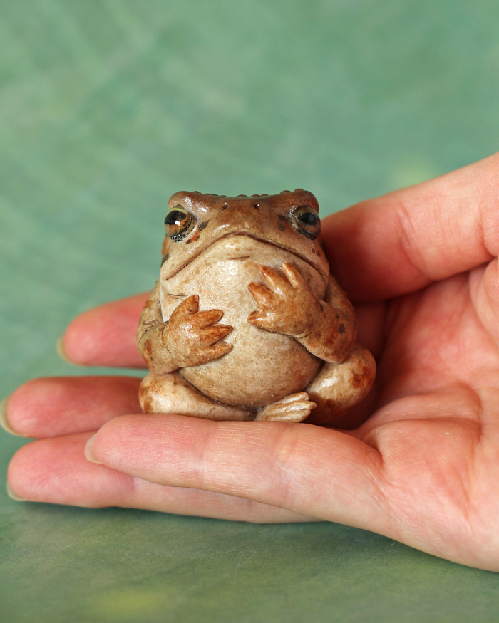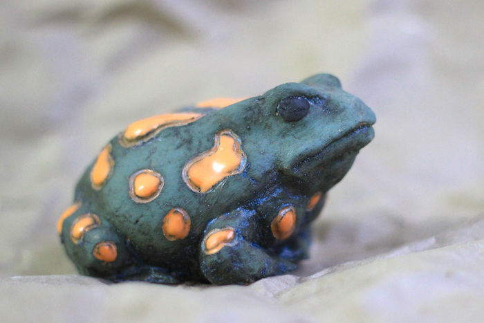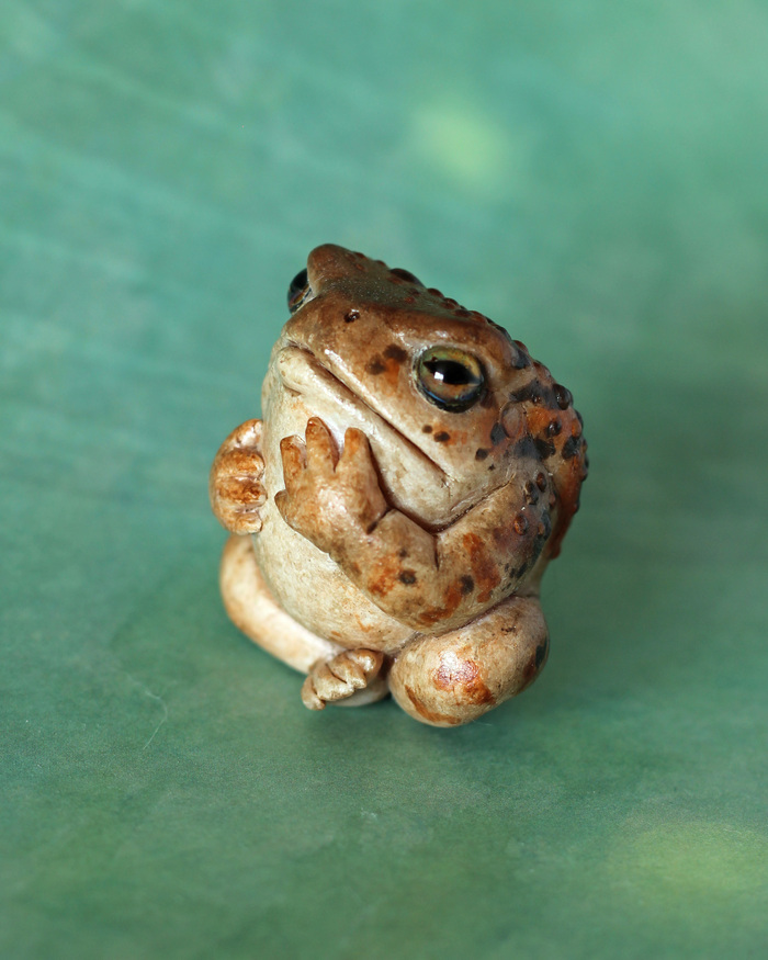 В качестве пробников для глазурей я наделала таких небольших 10-сантиметровых жабок, которые отминаются по той же технологии. Мне понравился процесс, и впоследствии я начала делать их как самодостаточные работы.