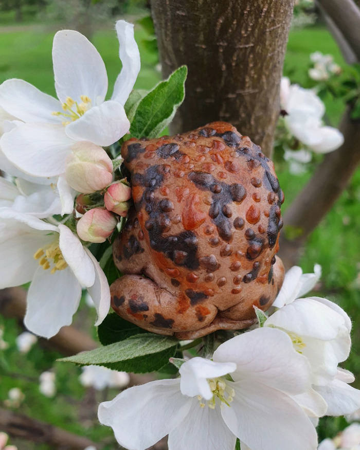 Кольца на этой жабе покрыты глазурью с оксидом меди