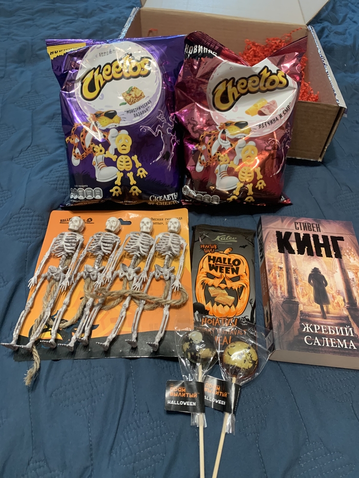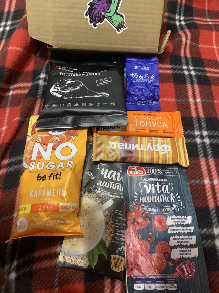 Подарок супер-новогодний) полотенчико с любимыми котиками (красного цвета, наверное отправитель реально Баба Мороз, иначе как она угадала, что кухня у меня в красном цвете), клевая термо-кружка,носочки, вкусняхи, интересная творческая тетрадь, а также нечто синее в форме милого кролика ( я подозреваю, что это самодельное мыло и я в восторге) котоинспектора тоже не обидели!