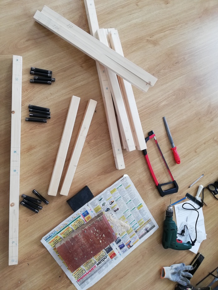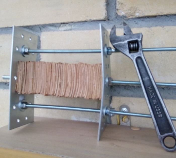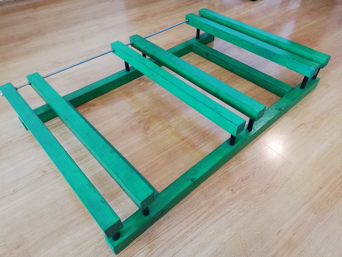 Итого подставка размером 100*65*15 см. Высота подбиралась исходя из ограничения, что-бы у самого малого вела (колеса 20``) каретка не задевала за подставку. Ширина слотов: два по 50 мм, один на 52 мм, хотя их можно и регулировать гайками. Танцуем от ширины покрышек велов.
