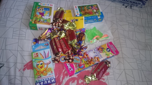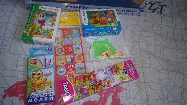 Тайная Снегурочка не обделила вниманием и маленького сынишку 😘 ему и карандаши и краски и пазлы и наклейки-стикеры, а брелок бабочка прицепим на рюкзак для сада
