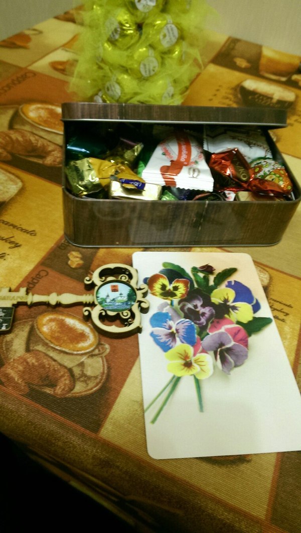 К слову сказать, схватив посылочку и добежав до машины, я с нетерпением вскрыла ее сразу...и заглянула одним глазком...думала шампанское, оказались вкусные конфетки :)