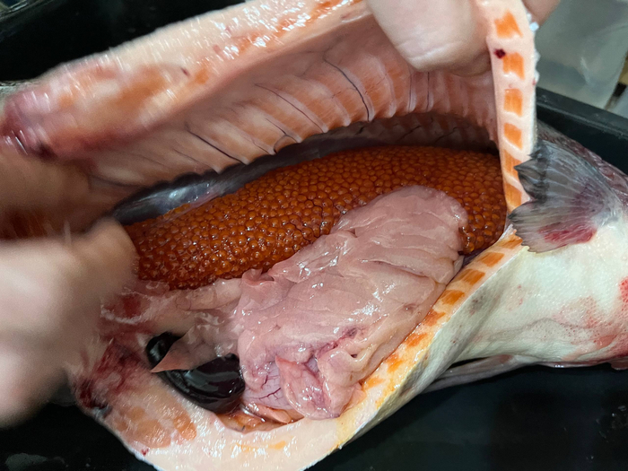 Веселье началось, с рыбой. Она оказалась с икрой, о чем предупреждали несколько источников, которые закупали до. В моей жизни всегда была икра или плотвы, красноперки, леща или воблы. Как говорил отец, если рыбка пахнет, значит икра вкусная. А тут красная.