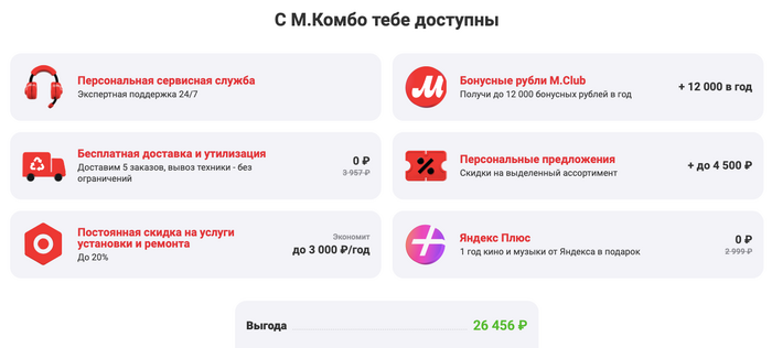 Благодаря новой подписке М.Комбо вам будут доступны следующие привилегии: