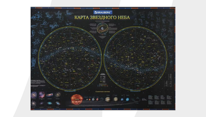 Brauberg — это настенная карта с подробным изображением созвездий, планет и других небесных объектов. Она станет стильным дополнением интерьера и полезным инструментом для изучения астрономии. Ламинированная поверхность защищает карту, что увеличивает ее долговечность.