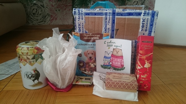 Здравствуйте! Всех с наступающим Новым Годом! Судя по полученному мной подарку вела я себя в этом году очень хорошо) Подарок я получила еще вчера, сегодня отошла от шока и села писать! Я в восторге! Мне всегда нравились подарки, которые мне присылали, но тут ребёнок внутри меня пробудился)) Котоинспекции у меня нет, но служебная собака одобрил вскрытие коробки, за что был злостно завернут в мишуру и посажен фотографироваться))