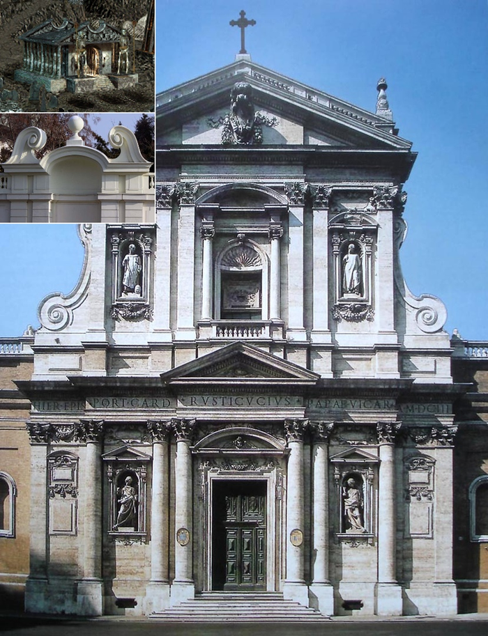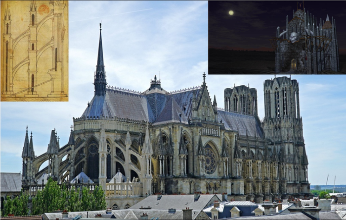 Декор капитолия, замка, дворца пороков и основания покинутого дворца на первый взгляд соотносится с декором укреплений в Темнице: те же машикули, высокие массивные зубцы, выступающие за фасад, многоуровневая оборона. Однако, за одним исключением, профиль самих зданий и то, какую функцию выполняет этот декор, сильно различается. Никаких покато-пузатых диагональных стен мы в перечисленных зданиях не увидим: только строгие вертикали. Зубцы уже выполняют больше декоративную роль (из-за того, как далеко они отставлены), а замок и вовсе функционально не замок: от возведения узких небоскрёбов в средневековье не было никакого проку, так как замки строились, чтобы защитить от посягательств как можно бóльшие площади как можно эффективнее. Такие высокие замки, как у Инферно, могли нести, скорее, символическую функцию — а символизма этому замку не занимать. Если присмотреться достаточно хорошо, полностью отстроенный замок с пламенеющей полукруглой пастью и коптящими серными тучами напоминает, скорее, огромную дымящую печь, чем реальный замок. И этот образ перекликается с рядом стоящим котлом бесов, который, по всей видимости, тоже абсолютно не котёл, а самая настоящая печь.