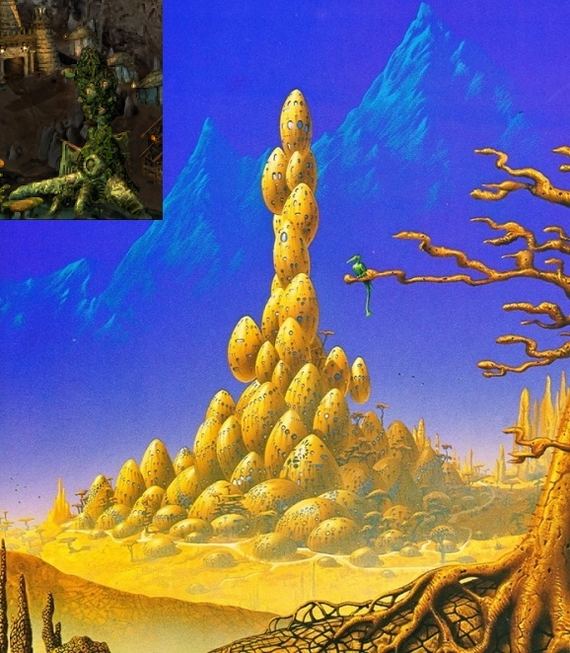 Капитолий же почти в точности скопирован с капитолия Темницы — только сделана поправка на вертикальность. Что это, как не адаптация технологий и моделей Нигонских союзников? Ту же мысль подтверждает и рынок (отличающийся только перекладинами наверху и выставленными наружу ящиками с серой — которую дьявольское хранилище ресурсов, кстати, не производит), кузница и таверна — ассимилированная уже у Замка. Так как кригане в мире Меча и Магии — инопланетные захватчики с роевой социальной структурой и технологиями, основанными на модифицированной органике, не мудрено, что им было не до развития их собственной архитектуры. Не исключено, кстати, что рога и шипы, обсуждённые два абзаца назад, могли быть не «органическими мотивами», а настоящей органикой.