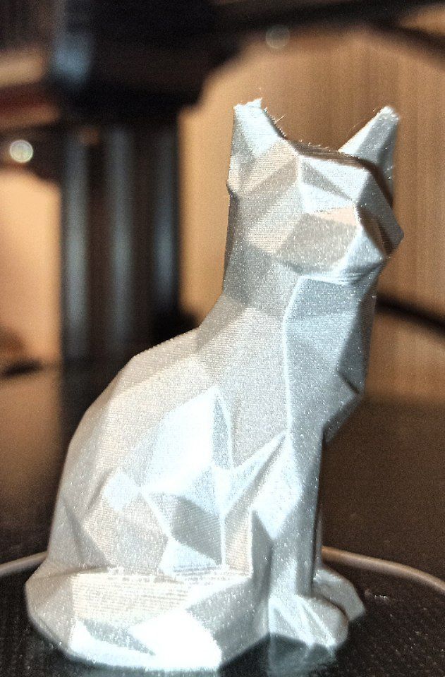 Следом напечатал еще тестового лиса из этого же пластика. Напечатался так же, без приключений и с первой попытки. Все слои очень ровные, немного соплей на ушках - не заморачивалсч с настройкой ретракта и использовал в слайсере стандартный профиль для Ender3 и базовый профиль для пластика PLA.