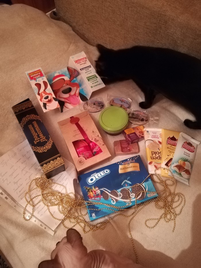 Урря!! Дождалась таки я подарочек от Деда Мороза! Извещение от 25.12.17 обнаружила в почтовом ящике только 9.01.18. К старому Новому Году от Германа Юрьевича(мой тайный Дед Мороз) мне пришли красивая открытка с собакеном, умопомрачительное варенье из айвы(уже хомячу), душистые (угадал Дедушка с запахом!!) девочковые глупости для ванны, куча вкусностей к чаю(детеныш умыкнул одну шоколадку себе) и магнитики с красивыми видами Дербента(это тайные знаки, что мне нужно обязательно там побывать(я 2 раза в год путешествую по России) . И нежданчик - коньяк' Традиции Дагестана'!!! Дедушка Мороз, я была хорошей девочкой, хорошей матерью, хорошей женой, добрым начальником в 2017 году!! Хотелось написать подробный пост, но то чувство, с которым я получала посылку, открывала коробку, разворачивала свёртки, разглядывала подарки, ела варенье, пила коньяк не передать словами и фотографиями. Это оччень личное. Pasinok,спасибо огромное за подарки! С праздником Вас и ваших близких, здоровья и долгих лет жизни маме! Да прибудет с нами сила ПИКАБУ!