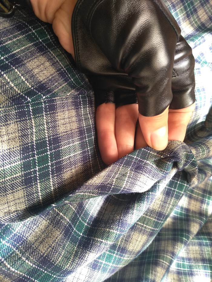 А потом всё как во сне, вышла из дома по делам, а там за углом магазин тканей, думаю, дай зайду, посмотрю что есть.. Потрогала, понюхала.. Красного не нашла, но влюбилась в серо-сине-зелёную гамму. Выглядит спокойнее, да и глаза у меня зелёные. Прикинула ширину ткани 145, нужен квадрат, и ещё 15см на кармашки и пояс. Пара крючков, нитки под цвет и молния- невидимка, потому что хоть талия и осиная, но жопа у меня в такую дырку не пролезет..